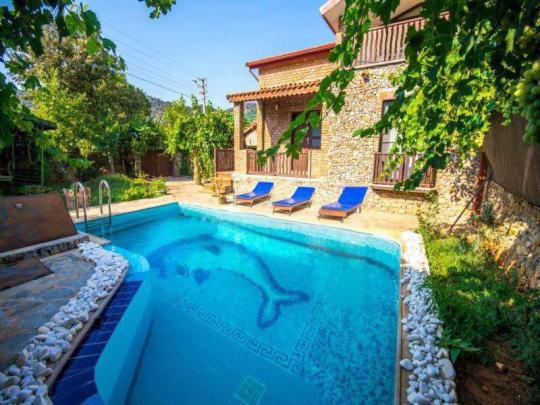 Havuzu korunaklı muhafazakar kiralık villa Ecrin Fethiye Kayaköy de bulunmaktadır. Villa Ecrin etrafı yüksek duvarla çevrili yeşillikler arasında havuzuda dışarıdan kesinlikle gözükmemektedir.Kiralık villa Ecrin geniş bahçe içerisinde yeşillikler ile etrafı çevrili muhteşem bir tatil villasıdır.Villamız yatak odası ve geniş balkonundan havuz manzarasının yanında muhteşem panoramik orman manzarasına sahiptir.Villa Ecrin muhafazakar tatilciler ve balayı çiftler için en çok tercih edilen kiralık villa seçeneklerimizden birisidir.Yeşillikler içerisinde bulunan kamelyası ve taş BBQ ile keyifli vakit geçirebileceğiniz bir villadır.Villamız konumu itibari ile doğal yeşillikler içinde bulunması taş mimariye sahip olmasından dolayı yaz aylarında da serin olmaktadır.Villamızın bulunduğu Kayaköy bir çok tarihi ve doğal güzelliği bir arada barındırmaktadır.Villamız geniş aile ve ebeynli aileler içinde güzel bir seçenektir.Yaz aylarında havuzun başında güneşin tadını çıkarabileceğiniz sessiz sakin bir tatil ortamı sunmaktadır. Villa amerikan mutfak ve 3 yatak odasından oluşmaktadır. Muhafazakar villa kategorisndeki Villa Ecrin 6 kişi konaklama kapasitesine sahiptir.Villamız gemiler koyu plajına 4 km,Ölüdeniz'e 10 km,Hisarönü 7 km ve Fethiye merkez'e 10 km uzaklıkta bulunmaktadır.